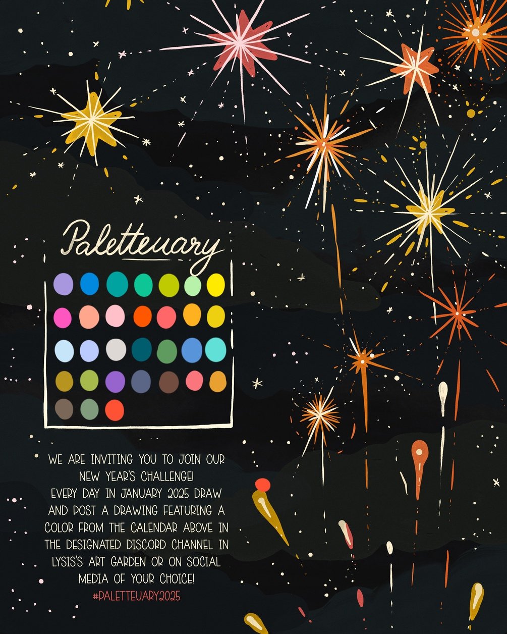 In January 2023 and 24 we all had a bang with the color challenge we cooked up to get the new year started strong with new art and a revival of our socials, as well as getting connected. Let’s repeat it in 2025 with another round of Paletteuary!