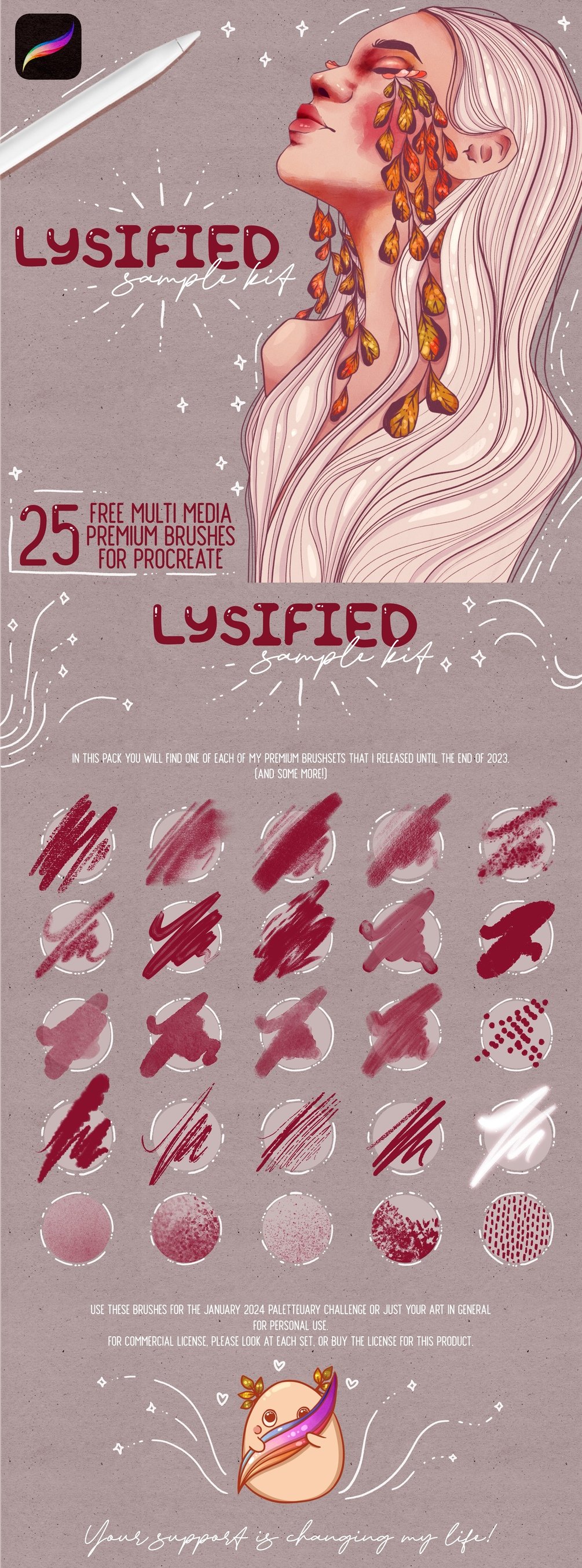 🤍 Lysified Sample Pack 2025 - Sample premium sets, 25 free brushes for Procreate