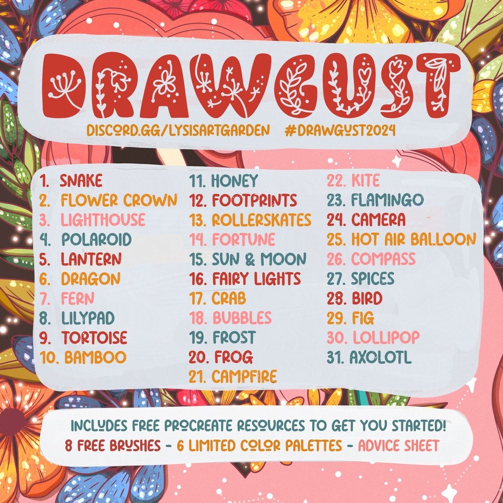Join in for a community art event this August with a prompt list! Itβs great for beginners and more experienced artists alike. This is the box that contains resources that will help you in your journey.
